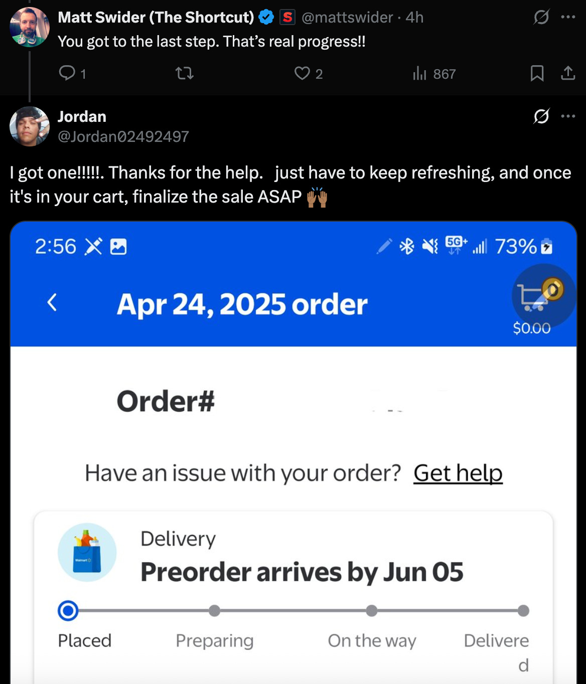Here’s proof that, hours after the Walmart Switch 2 pre-order first launched at midnight, people are still able to check out with the console by being on the page at the right time.