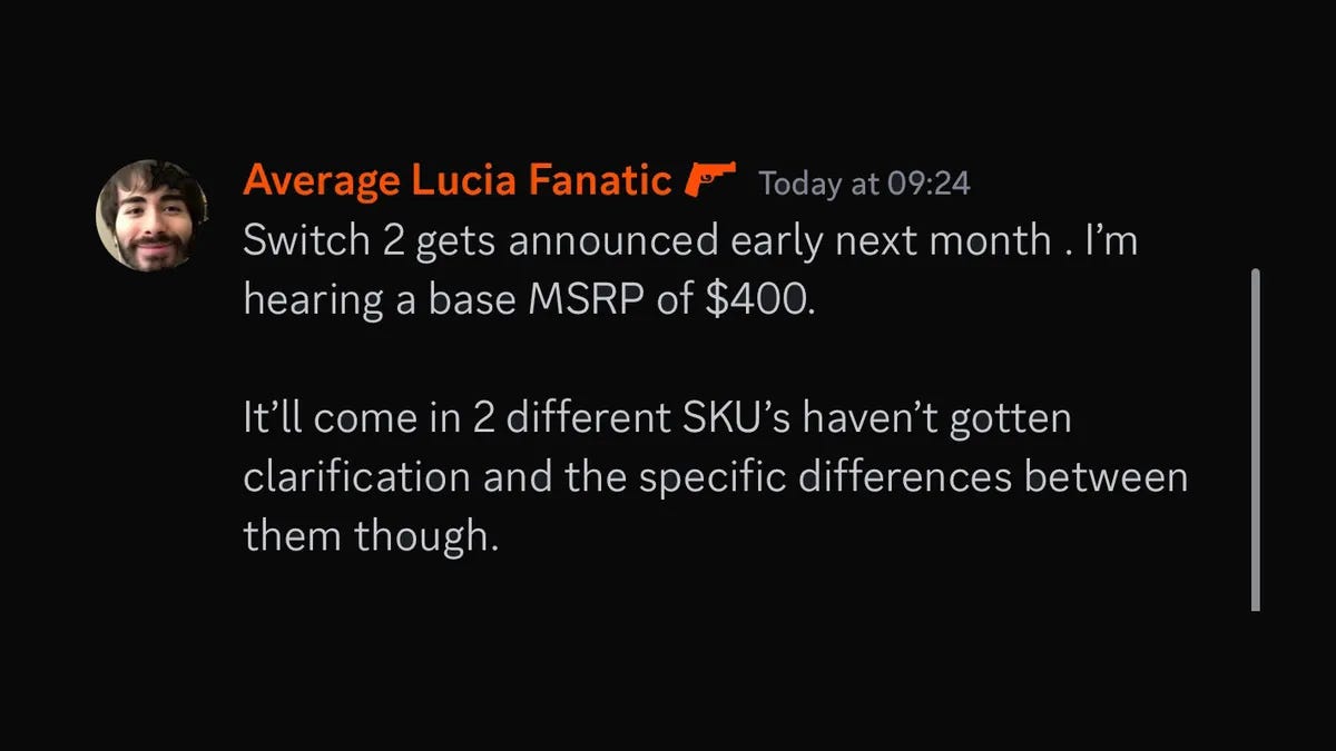 According to a leaker called “moistycharlie”, who shared the leak on the GTA 6 Discord server (thanks, Reddit), the Nintendo Switch 2 will come in two SKUs with the base model costing $399.99.