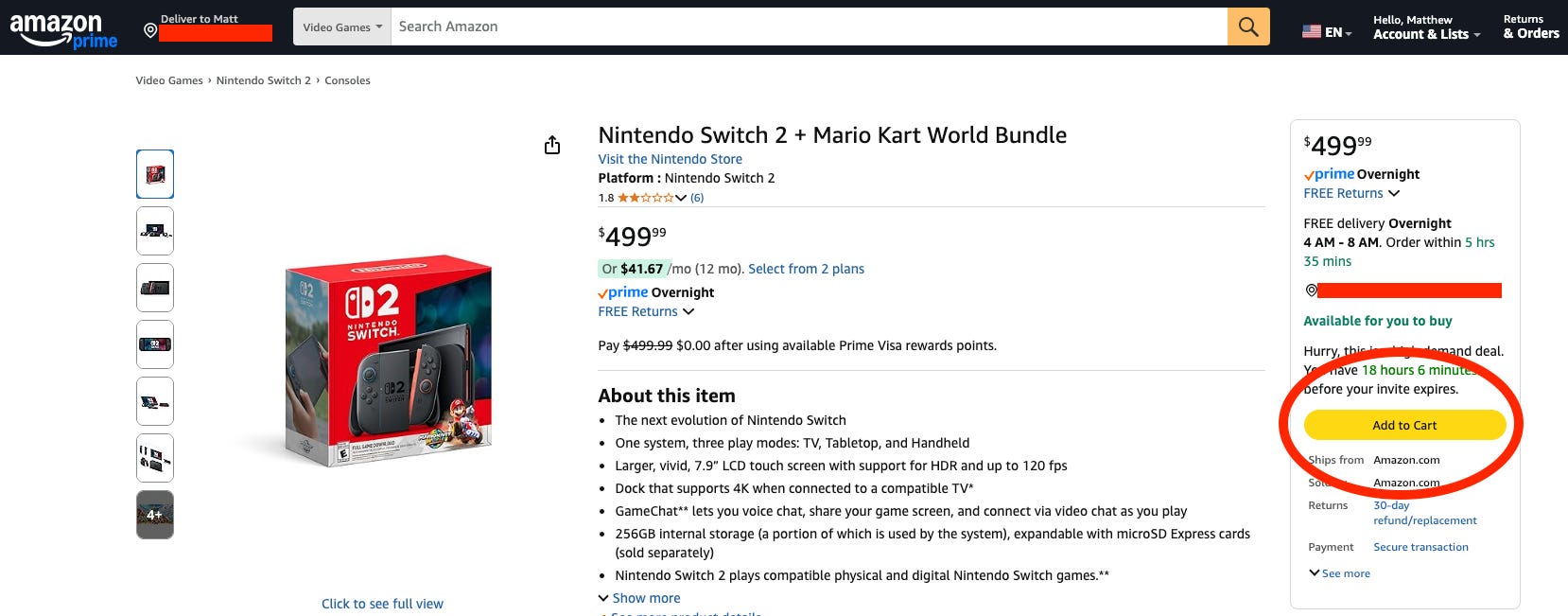 That’s less than the 24 hours promised to check out with the console, but the limited-time invite makes sense. If the lucky Amazon customer with the email invitation doesn’t want to buy the Switch 2 (say, if they already received it from last week’s Walmart restock), Amazon wants to offer it to the next person.