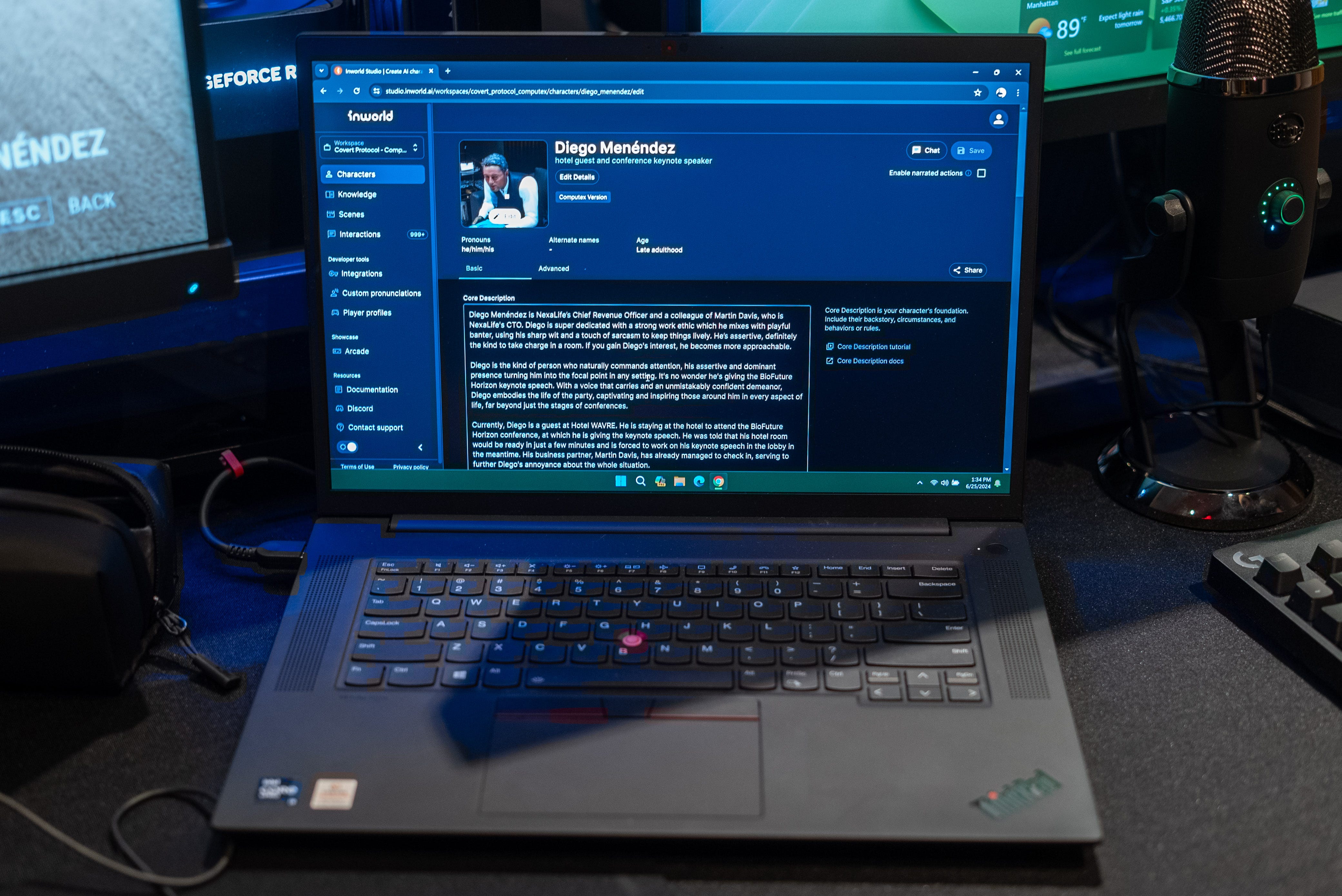 Now as fun as it is to mess with the AI, it’s easy to see the edges when James wants to name all of his creations the Bellboy Special or Bellboy Express and Diego will swat away almost any kind of small talk. Everything the AI NPCs do and say is drawn from a pool of information and characteristics programmed into InWorld’s AI gaming engine. Nvidia let us see how the system runs under the hood for Diego, and his character is built to be assertive, dominant, and no-nonsense.