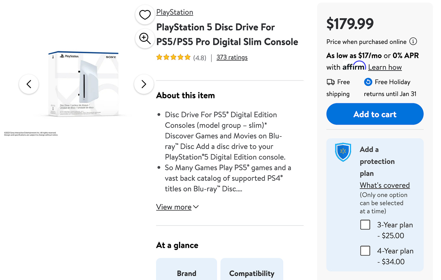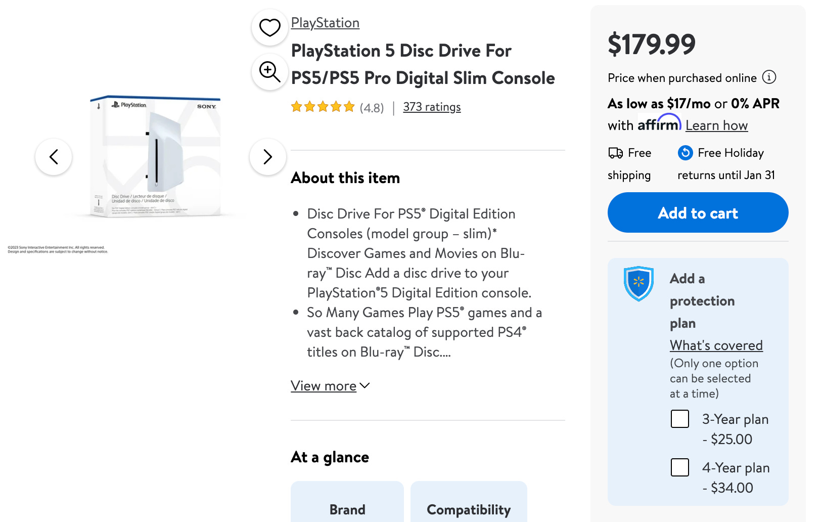 Right now, the PS5 Disc Drive is sold out at Walmart, Best Buy, Amazon and Sony’s PlayStation Direct store. GameStop appears to have some units in stock, but it entirely depends on your location, as you need to verify your address.