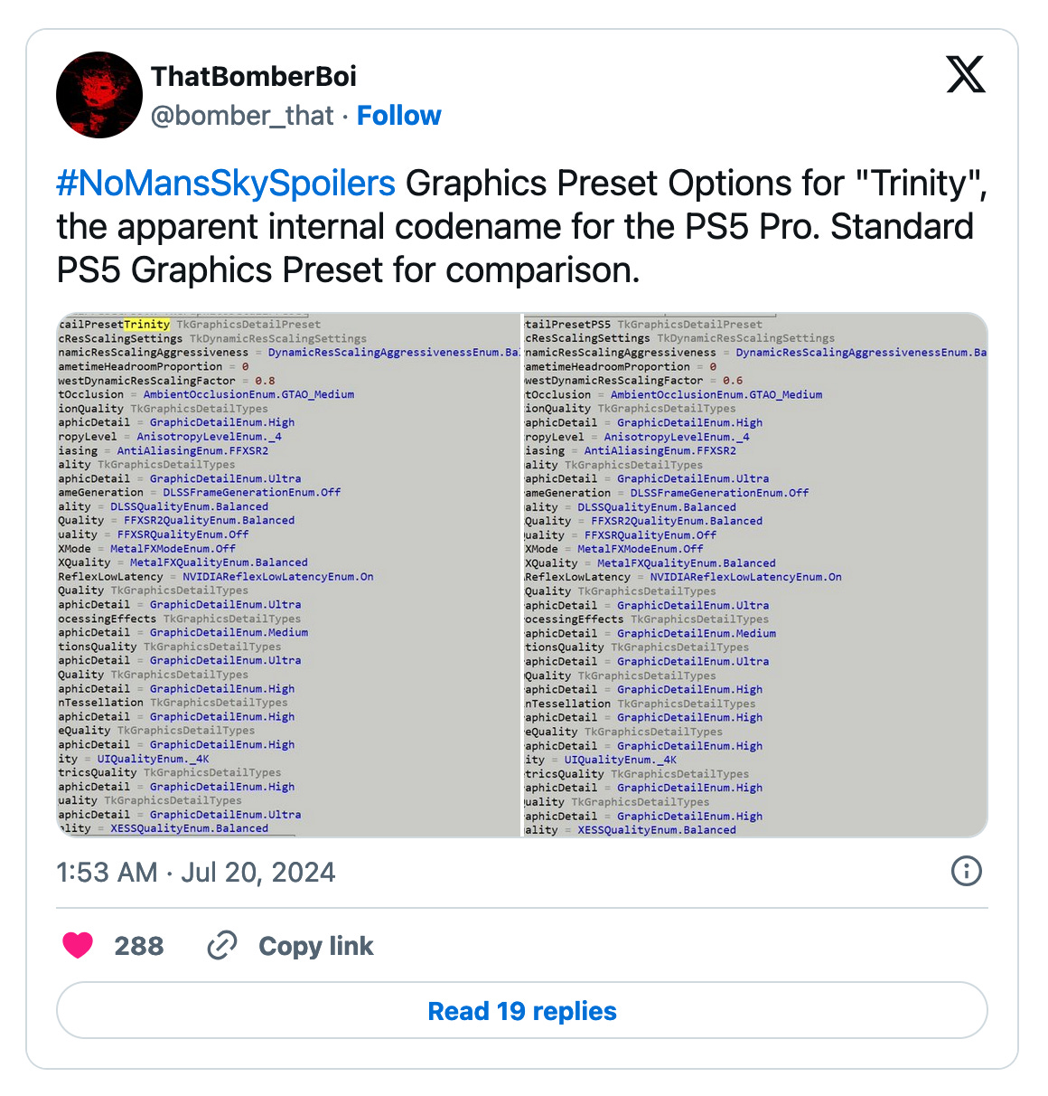 🕵️♂️ PS5 Pro, codenamed Trinity, has been spotted in No Man’s Sky update