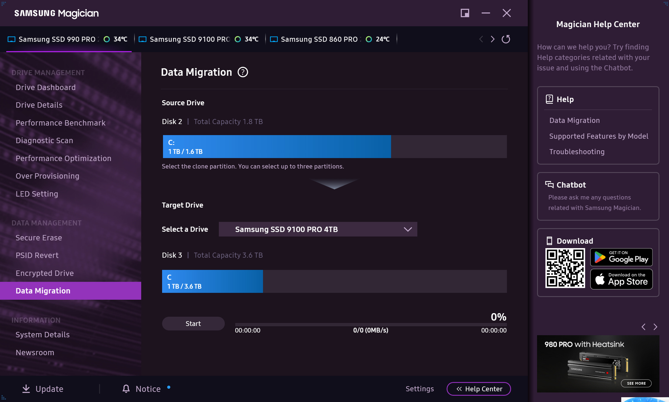 šŖMagic software. Samsung has some of the best-developed software for its SSDs. The Magician Software looks fantastic and is intuitive to navigate. You can set power modes, perform diagnostic tests, and benchmark your SSD within the software. The best part of the software is the Data Migration Assistant, which lets you transfer your Windows install from one drive to another, saving you from the hassle of reformatting all your drives and reinstalling the OS.