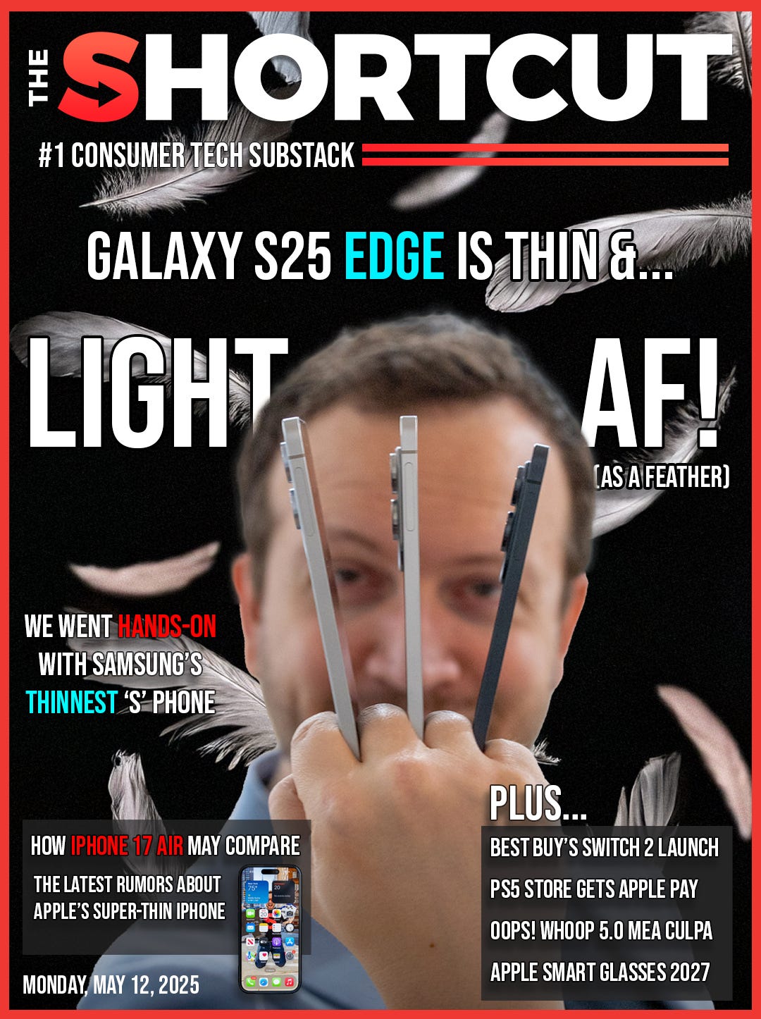 The Samsung Galaxy S25 Edge is so impressively thin that, when I held up its three colors, Kevin felt extra inspired to shoot The Shortcut’s cover photo in the style of X-Men, saying, “Hold them up like you have Wolverine’s claws.” Silly, but it worked.