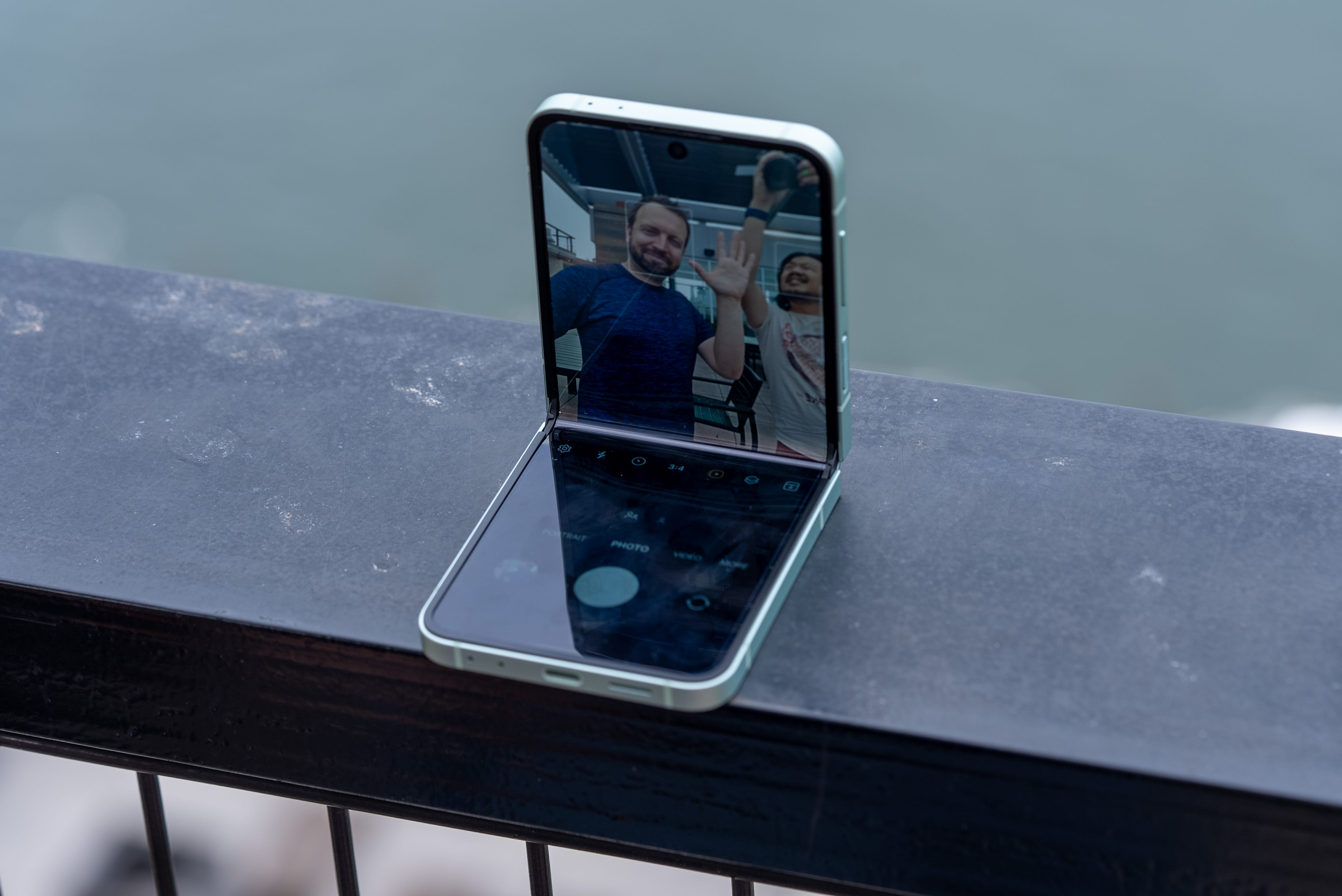 🗼 Mini tripod. Propping open the Flip 6 halfway makes it into a mini tripod (and it works better here than on the Fold 6). All you have to worry about is looking good in the shot – not pressing a button, not framing the shot, and not setting up a tripod.