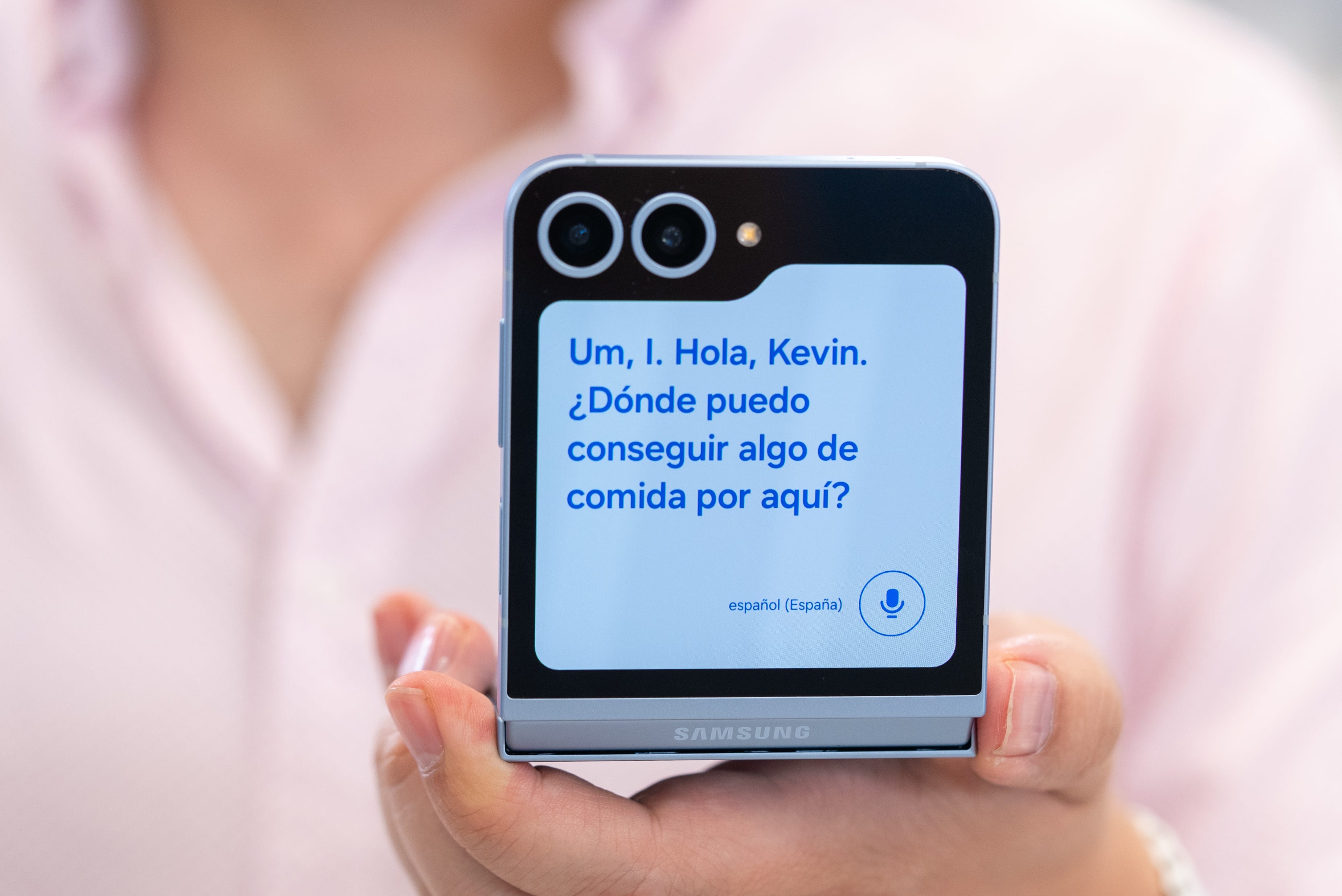🗣️ Interpreter: conversation mode. Live translations are one of Galaxy AI’s most useful features, as seen in our Galaxy S24 Ulta review, and now you can display translations on Flip 6’s cover screen. This new interpretation of the translation feature looks straight out of Star Trek and it removes a bit of the awkwardness of waiting for translations to generate. You simply activate the Galaxy AI translator and open the phone halfway. As you speak the phone will display your speech in another language, while on your end you can see a transcription of what you originally said and translated replies from the other person.