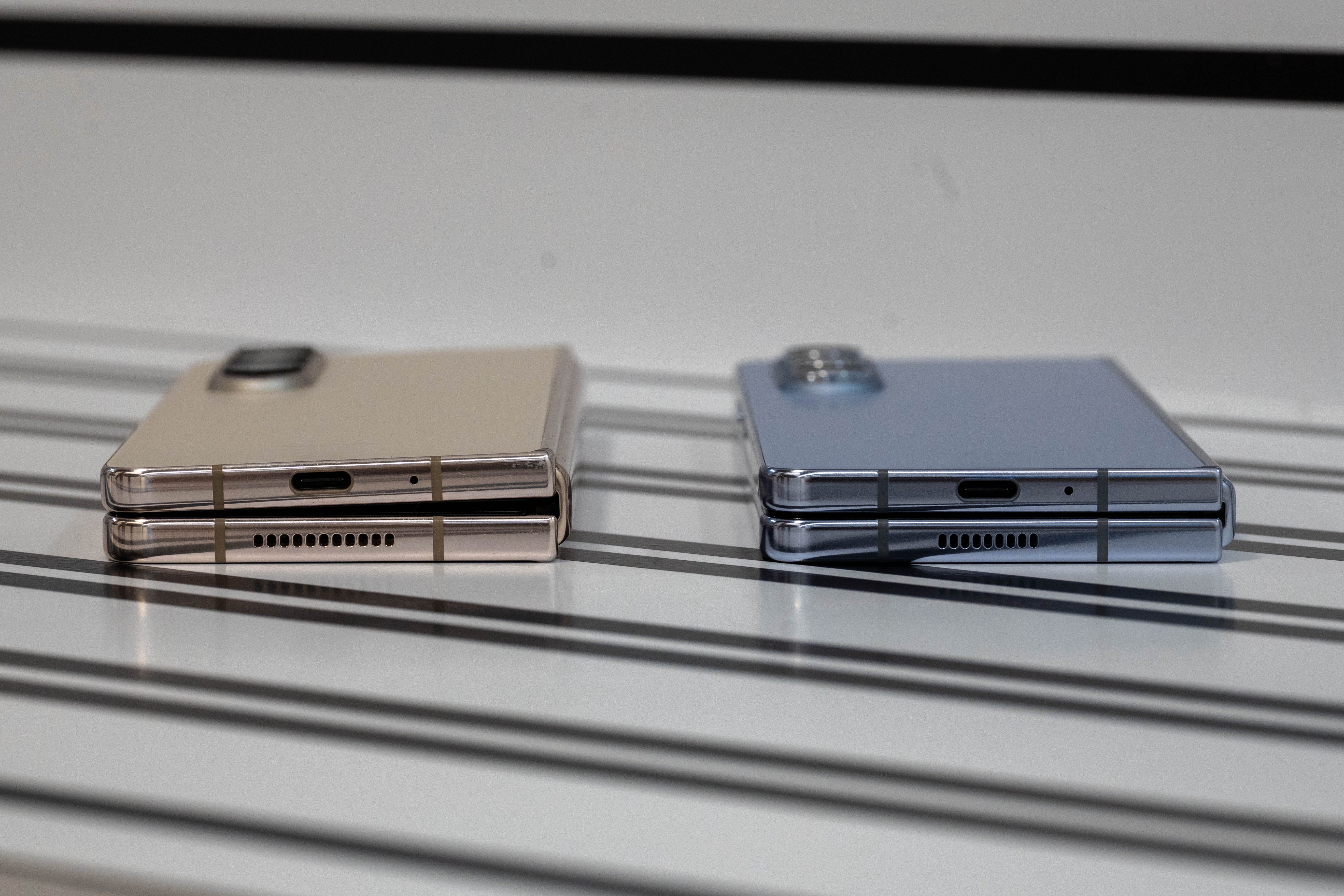 👀 See the differences below. The Galaxy Z Fold 4 (left) and Galaxy Z Fold 5 (right) shows the impact of a tighter hinge and gap-less design when folded in half.