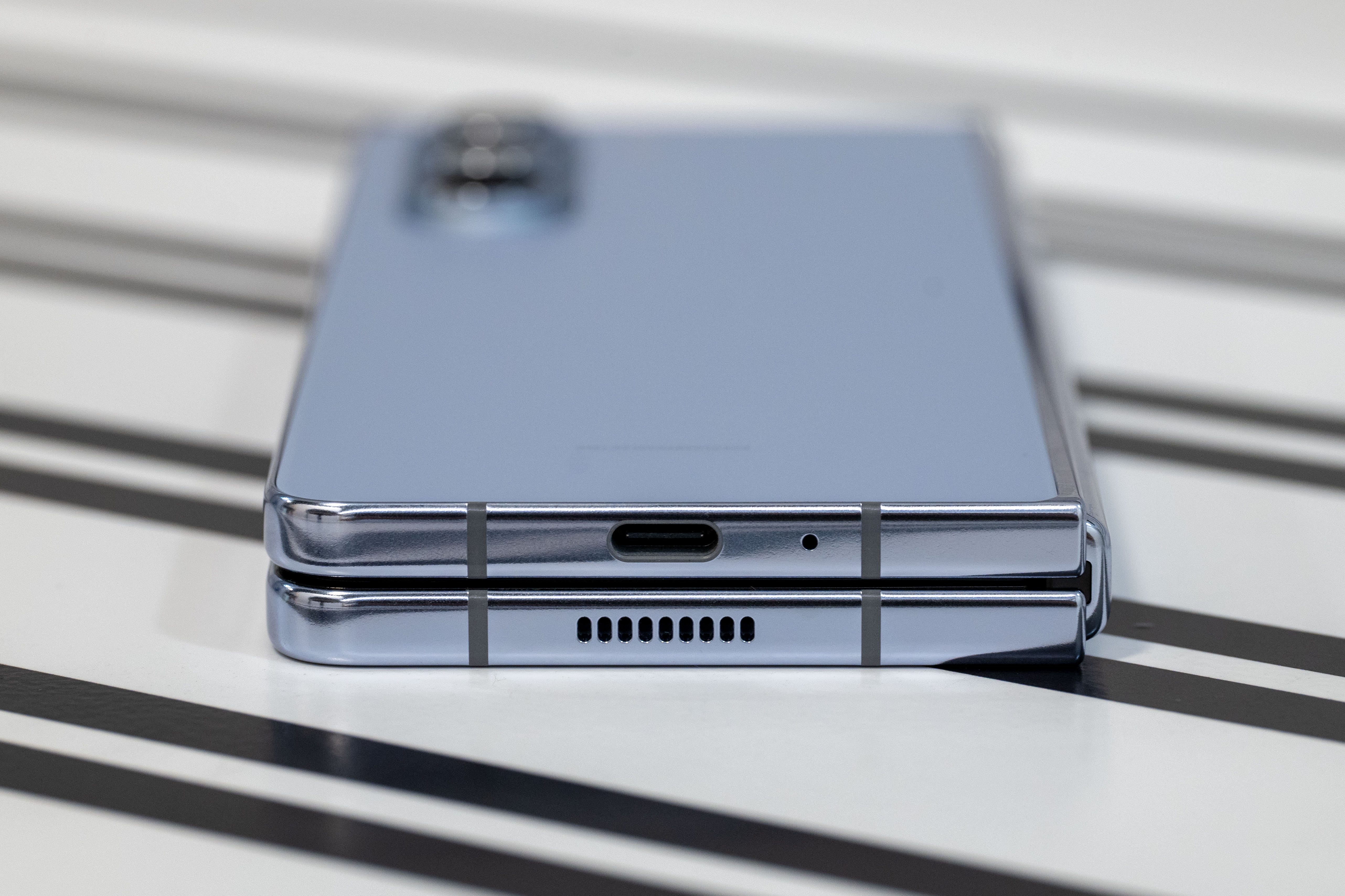 💦⏳ Ready for water, not sand. For the third year in a row, we get an IPX8 rating, meaning the Z Fold 5 is water-resistant. But I wouldn’t take it to the beach without caution. The bendable screen element now closes tight, but fine-grain sand remains the mortal enemy of all foldables.