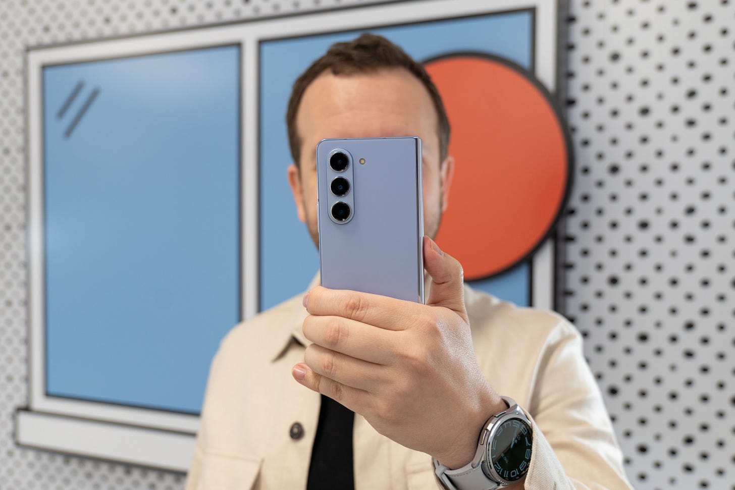 🍑 Rear selfies (hey now!) earn 2nd place. Ok, not those rear selfies, but selfies taken with the Z Fold 5 main camera can be a challenge compared to the Flip 5. Why? Because propping up the Fold 5 while looking at the screen is impossible (unless you are using the muddy 4MP camera). Its main cameras are on the back, whereas Flip 5 embeds its main cameras on the same side as the Cover Display. The Fold’s cameras are slightly more powerful, but the Flop takes the crown for selfies in the end.
