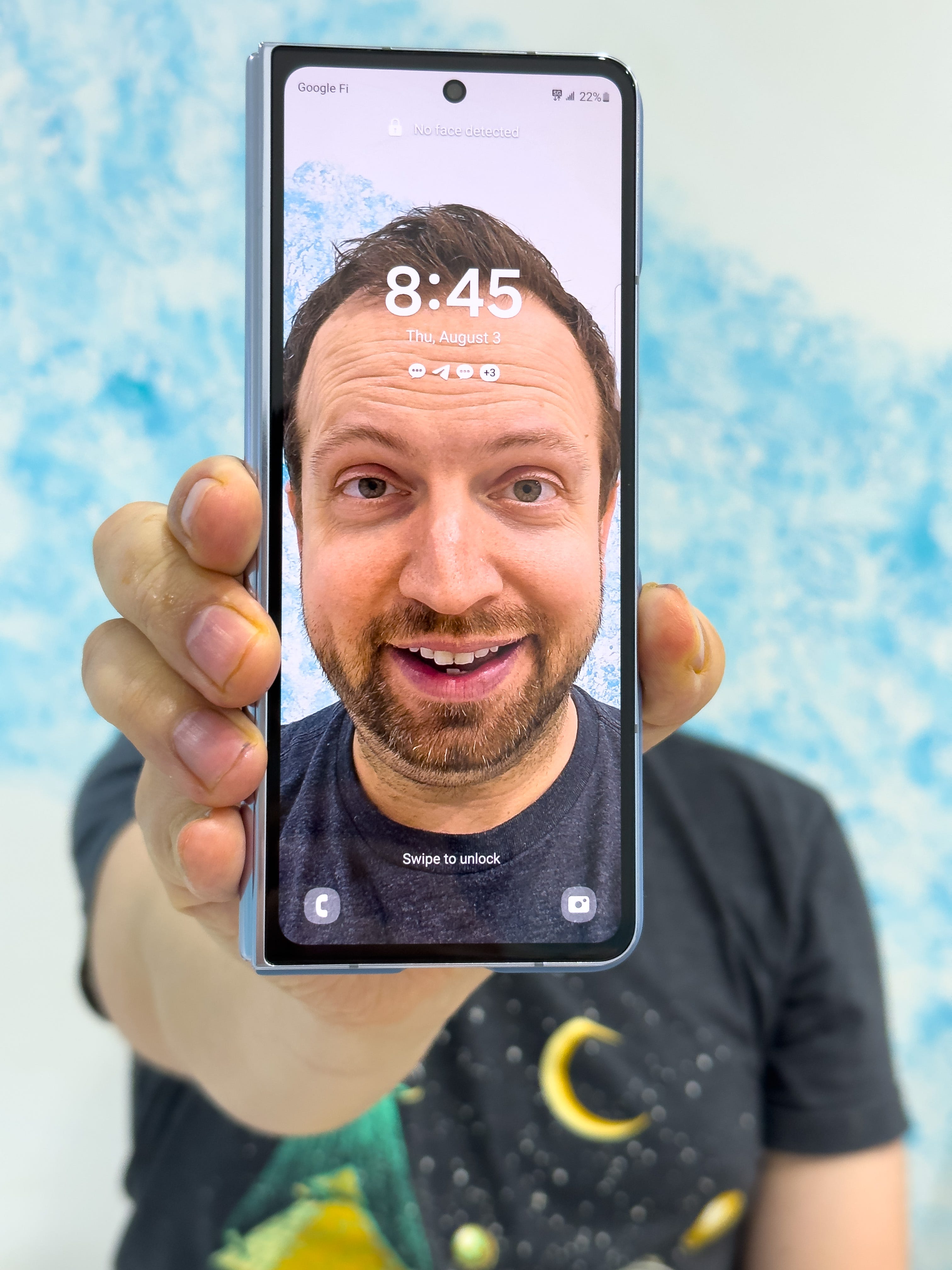 🤏 Gaps-be-gone. It does fold completely in half this time. The Z Fold 5 screen dimensions didn’t change year-over-year (it’s the smaller clamshell-style Z Flip 5 that has gotten a larger Cover Display), but I’m happy to report gone is the awkward air gap between the right and left half of the inner display when closed.