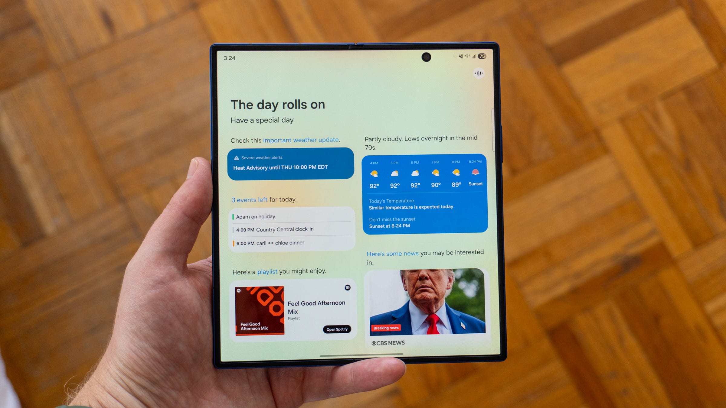 š¤ Galaxy AI presses on. Samsung threw in all of its Galaxy AI features itās been promoting on its past few devices, including Photo Assist, which is now better at removing unwanted subjects and objects from your photos. The Now Brief is also improved with more content, and I must say, it feels more robust than the previous version of Now Brief, which would only give me weather and calendar details (and sometimes traffic info if I was traveling somewhere that day). Features like Writing Assist and Transcript Assist are also here, rounding out an AI experience thatās both versatile and helpful.