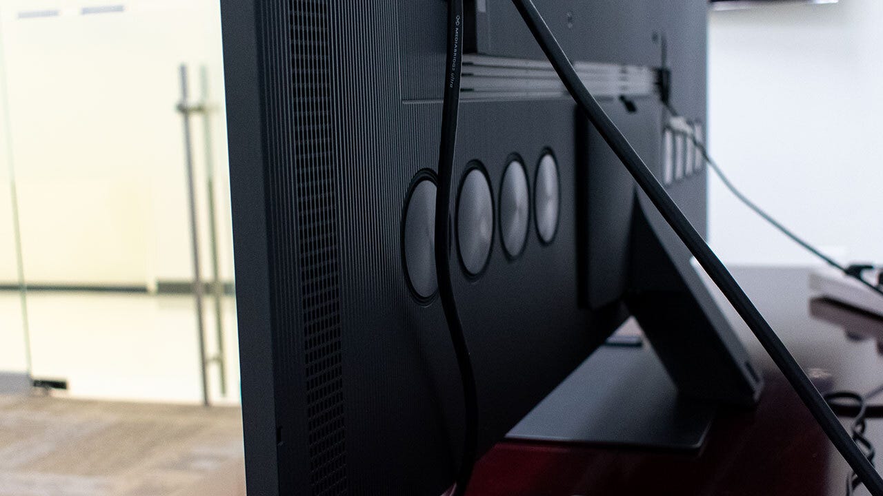 There’s something missing in the QN95C – and it’s actually good news: you’ll find no external connection box in this year’s model. Everything has been integrated into the television without the need for a Samsung OneConnect hanging out in the back of the television. I’m listing that as a perk in my review because, while I don’t mind the OneConnect box when it’s needed, the lack of an external connection box doesn’t seem to increase the thickness of the QN95C in a dramatic way.