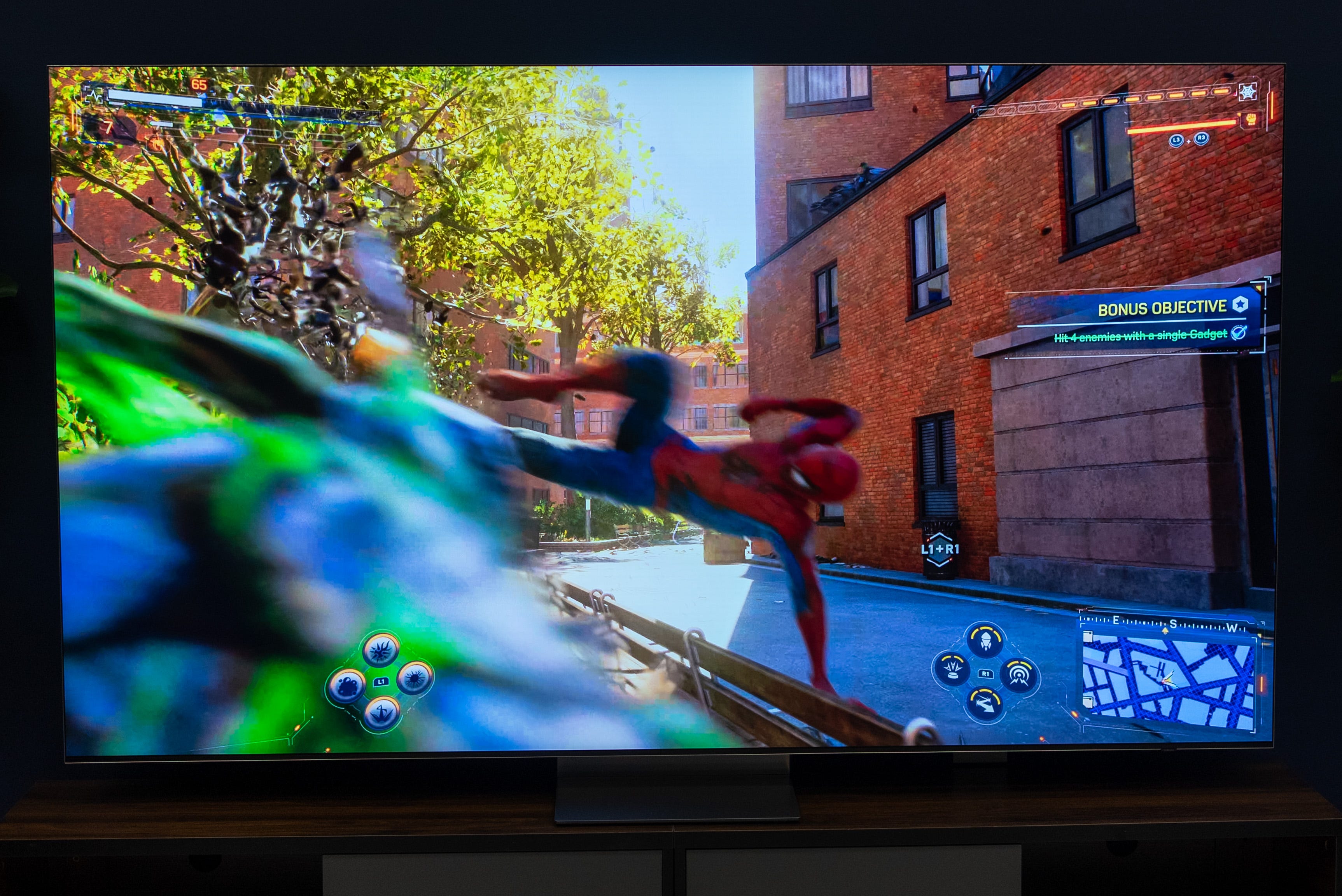 👾 8K gaming, finally? The 8K AI upscaling also did a fantastic job of making Spider-Man 2 look even sharper on the QN990F Neo QLED. The Wireless One Connect Box didn’t add any perceptible lag either. Web slinging and landing combos on enemies felt just as smooth and precise as plugging the console directly into the TV. Of course, the thing I’m most excited to test in a full review is plugging in the Nvidia RTX 5090 for some true 8K gaming.
