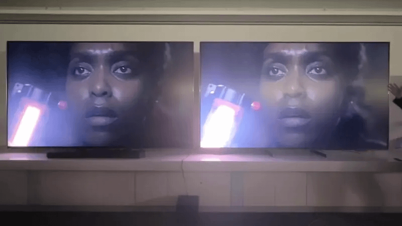 I saw a “simulation” with edited footage to show how HDR10+ Advanced should improve picture quality over HDR10+ on two of Samsung’s latest 115-inch Micro RGB TVs. You can see the biggest difference in how there are more gradations of light on the the characters face and the increased detail on the cave wall.