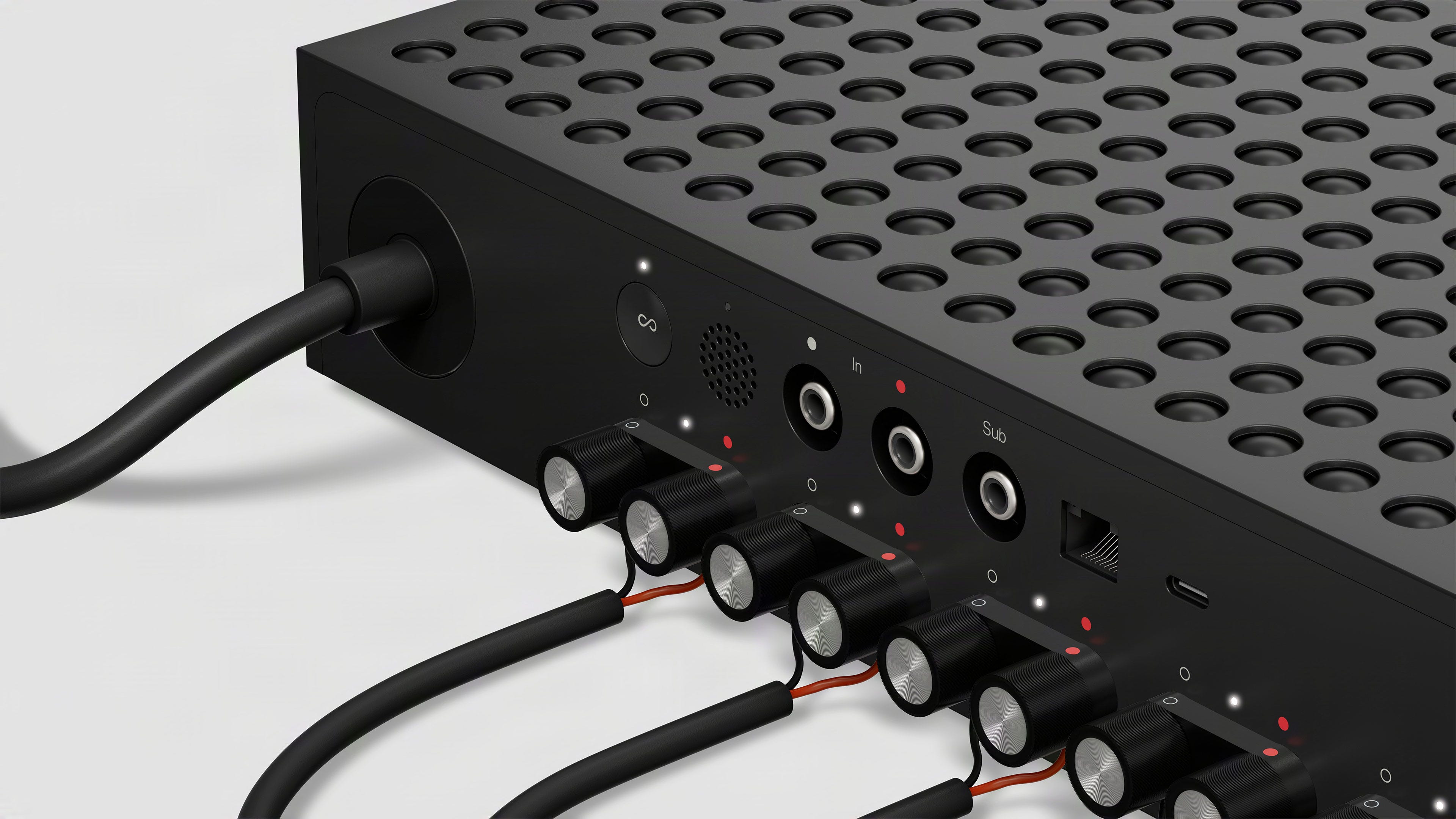 Sonos claims it’s also pushed the engineering envelope, developing its Multi Amp with GaN transistors to shrink the unit into a 1.5U chassis, compared to other equipment that fills a traditional 2U slot. The chassis is also perforated, so the unit cools through just passive convection. Sonos is confident that its Multi Amp can run so coolly that multiple units can be stacked together in a rack and still operate silently without the need of any cooling fan.