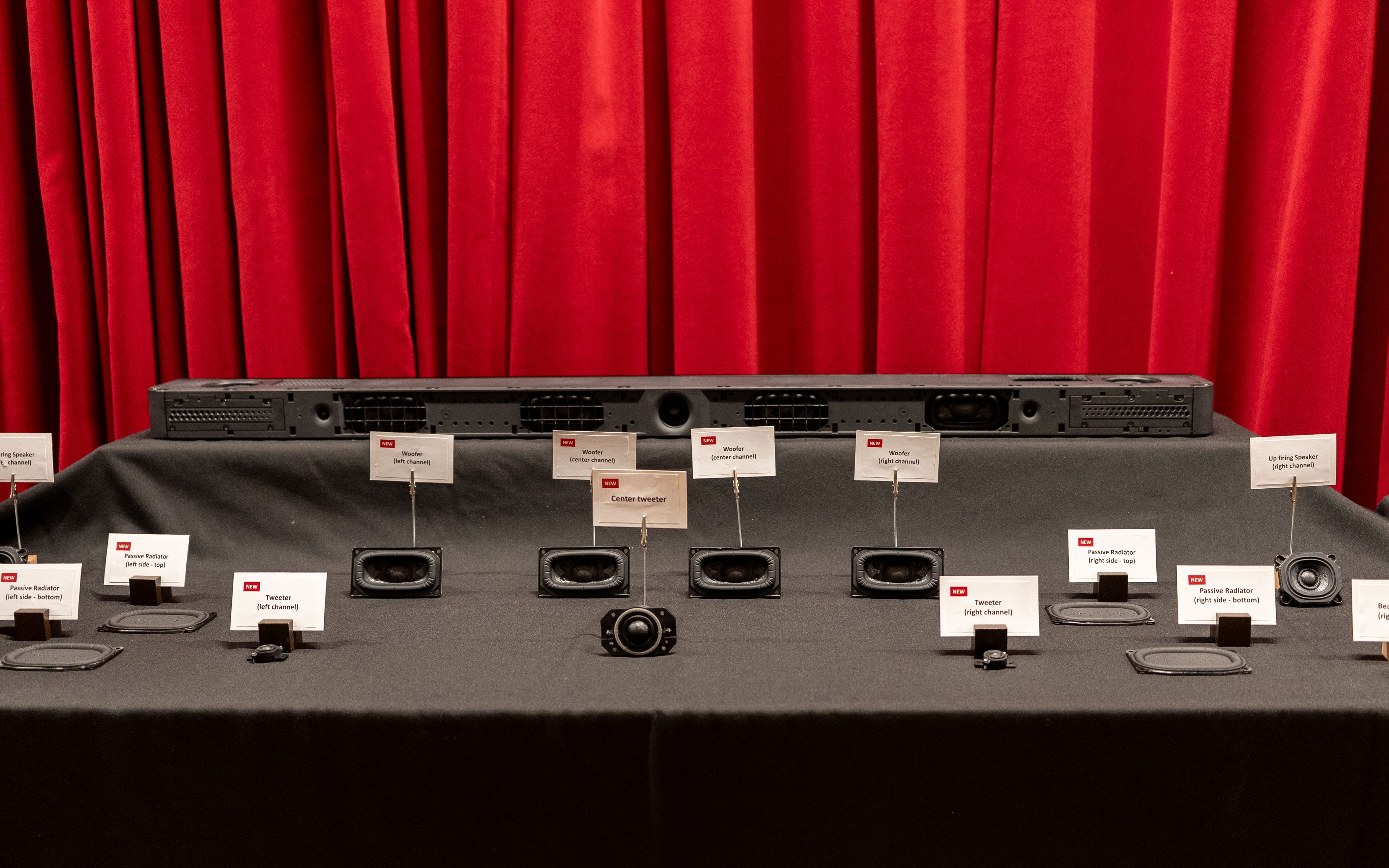 🔊 More drivers. Despite the Theater Bar 9’s smaller size, it actually features a 13-speaker setup, two more than its predecessor. The front of the soundbar features four woofers, four tweeters, and two beam tweeters joined by two side-firing full-range drivers. Height audio, meanwhile, is provided by two drivers and two passive radiators. What’s even more impressive is that some of the new components are actually bigger, like the 1.7 times larger front-firing woofers. Add in the new passive radiators, and the Theater Bar 9 delivers a fuller surround sound experience in a smaller package.
