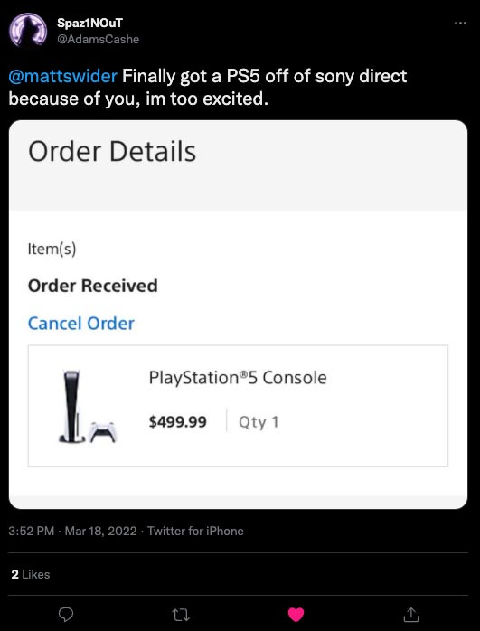 The best way to know when a Sony Direct PS5 restock email goes out is to follow my PS5 restock Twitter tracker Matt Swider account and The Shortcut on Twitter. I send alerts the afternoon before a Sony Direct PS5 restock will happen.