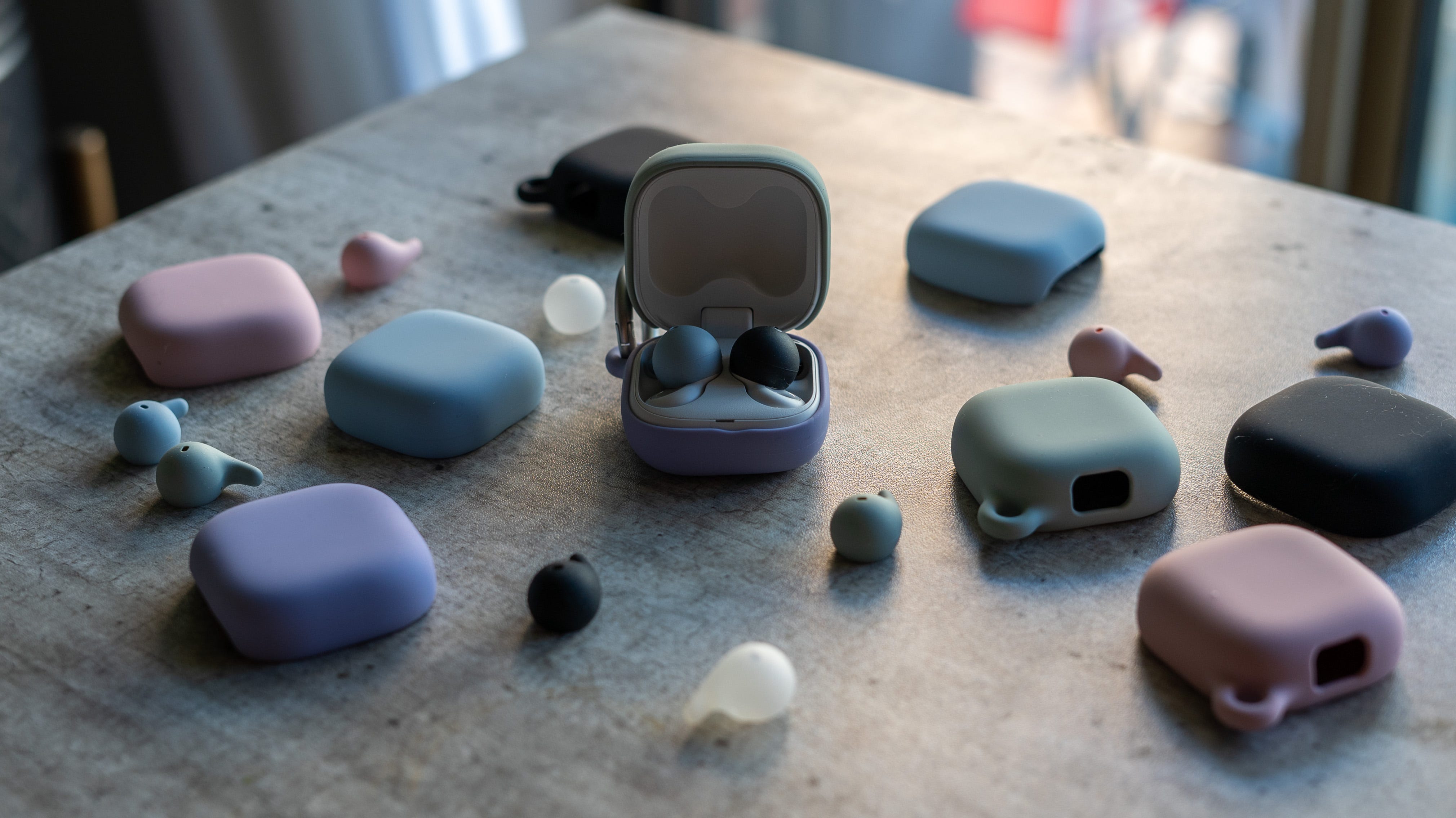🎨 Personalized design. The Sony LinkBuds Open are a little more stylish now that even the basic white and black colors feature a stone-like finish. There’s also a new violet color made in partnership with signer and actress Olivia Rodrigo. In addition to the basic color choices, Sony also has five different colored silicone covers for the earbuds and case. You can mix and match the colors like this crazy combo I have in my review, but the cost will quickly add up with each $9.99 earbud supporter kit and $19.99 case cover.