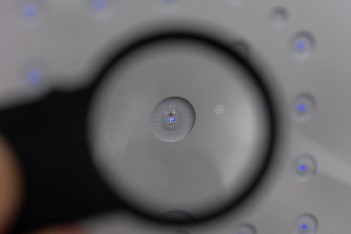 In the photo above, you can see a Sony Bravia 9 with its front LCD and color filter stripped off, revealing the bare backlight, which appears almost blue. On the right side, Sony’s True RGB backlight displays a color-matched backlight that forms a sort of low-resolution version of the image.