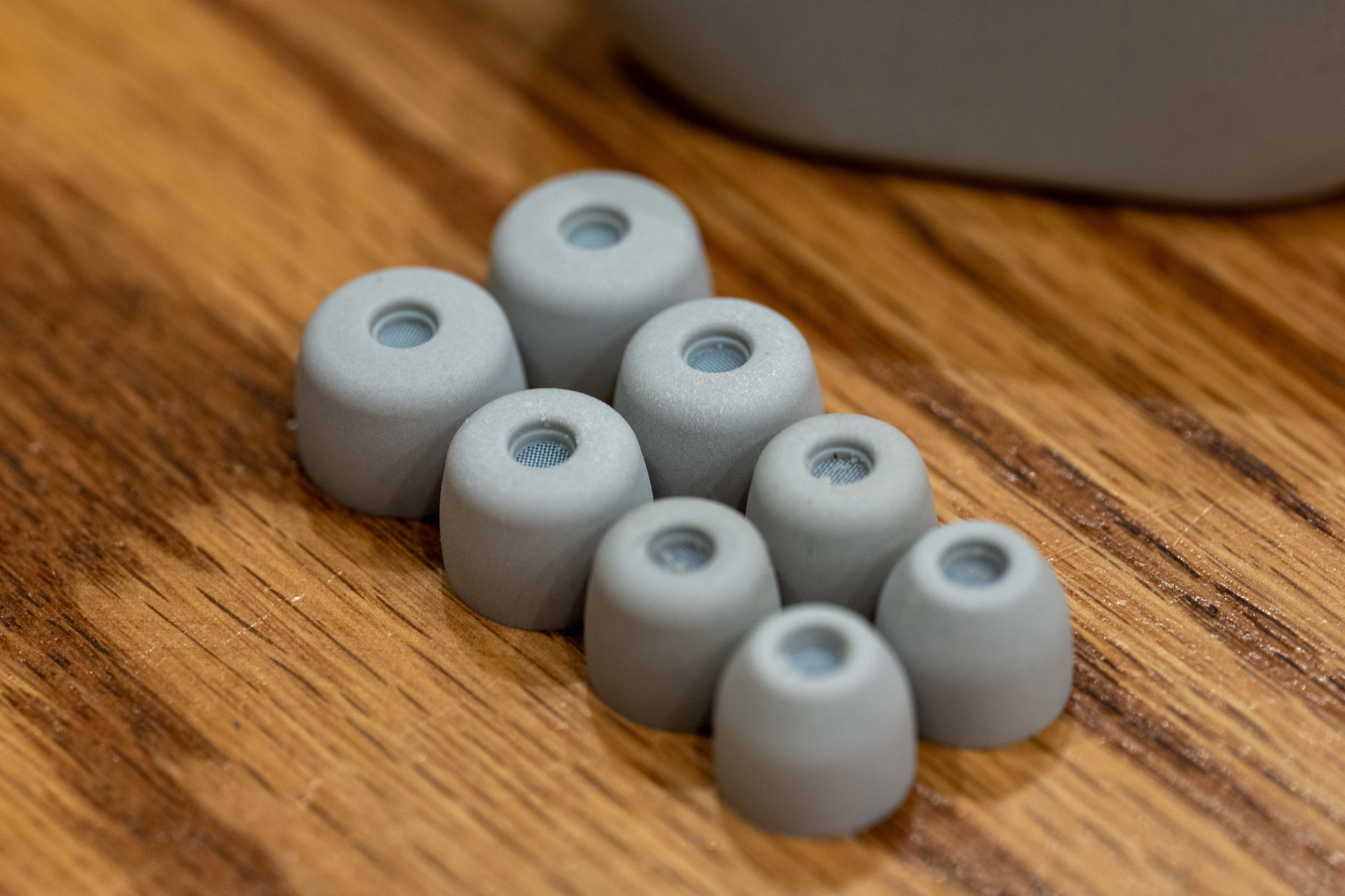 🫧Foamy goodness. Not only are the buds smaller, so are the ear tips. There’s a new extra small size that comes in the box for those with especially small ear canals. These ear tips are also made of a super flexible material so you can really squish them down before inserting them into your ear and they spring back to form a complete seal for physical noise isolation.