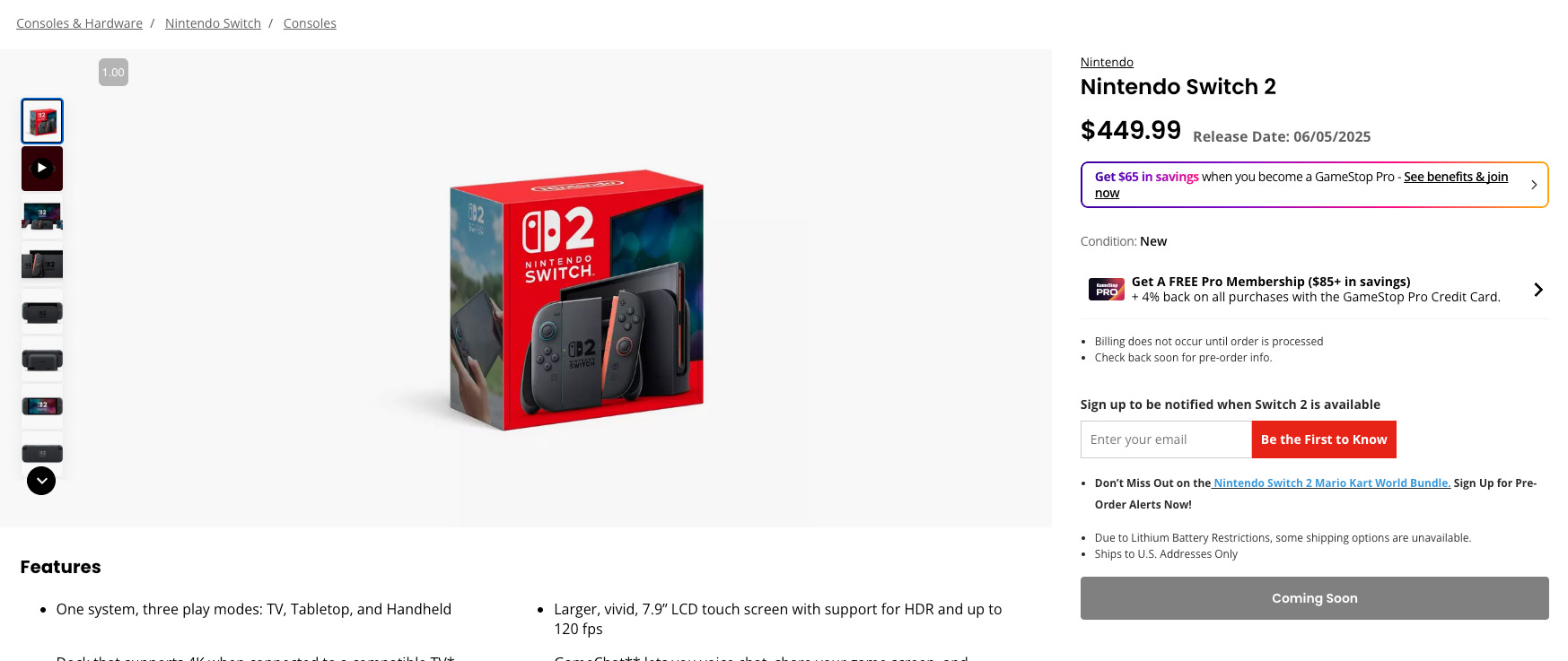 🛑 GameStop Switch 2 console / Mario Kart World bundle (not in stock yet)