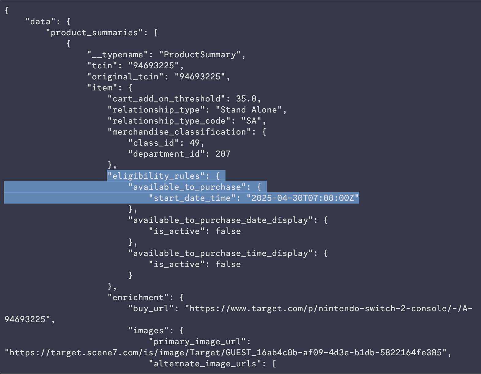 👀 Target's backend shows a potential Nintendo Switch 2 pre-order date of April 30 at midnight, though it may be a placeholder