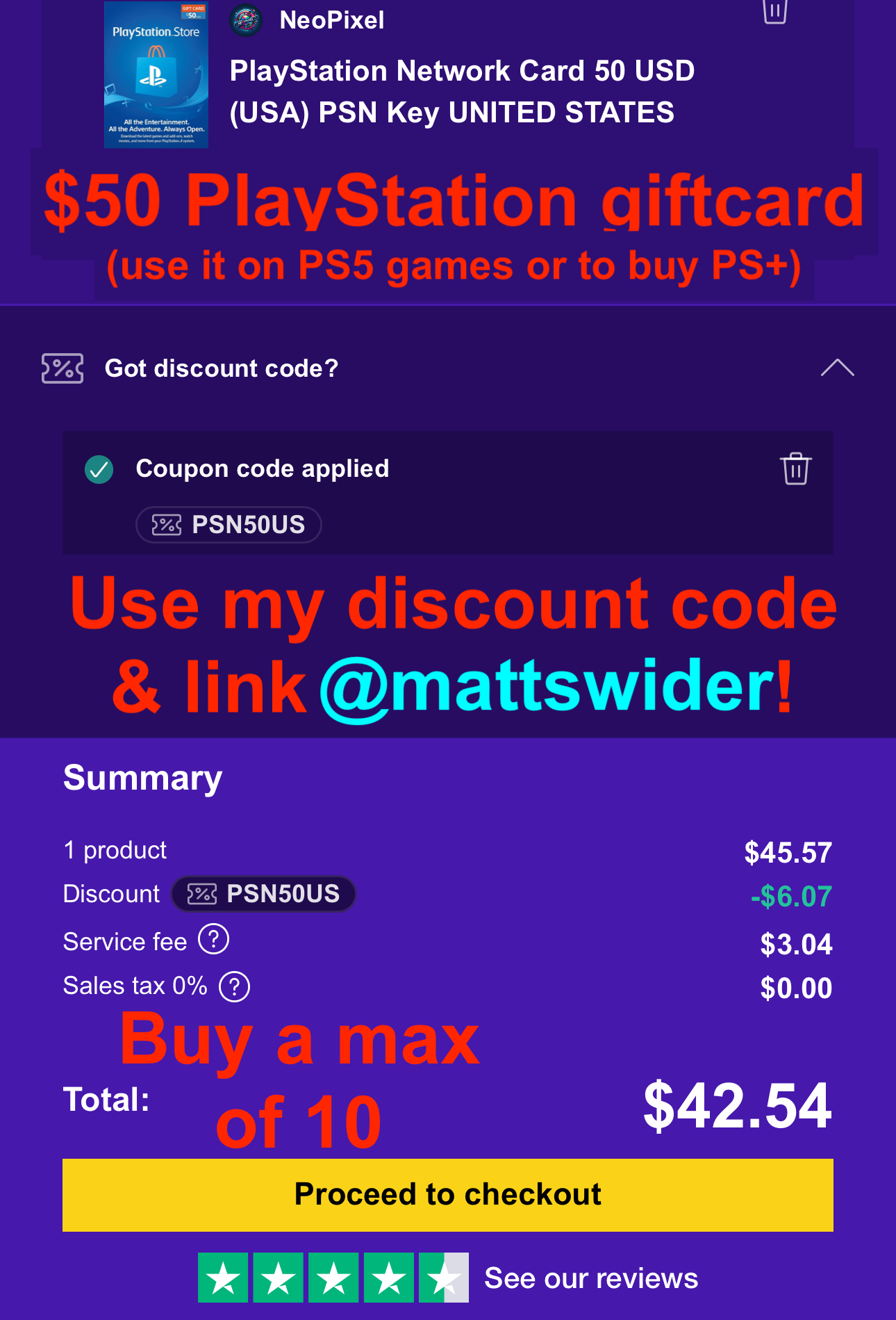 🟦 $50 PlayStation gift card for $42 (use funds for PS5 digital games or your PS+ renewal)