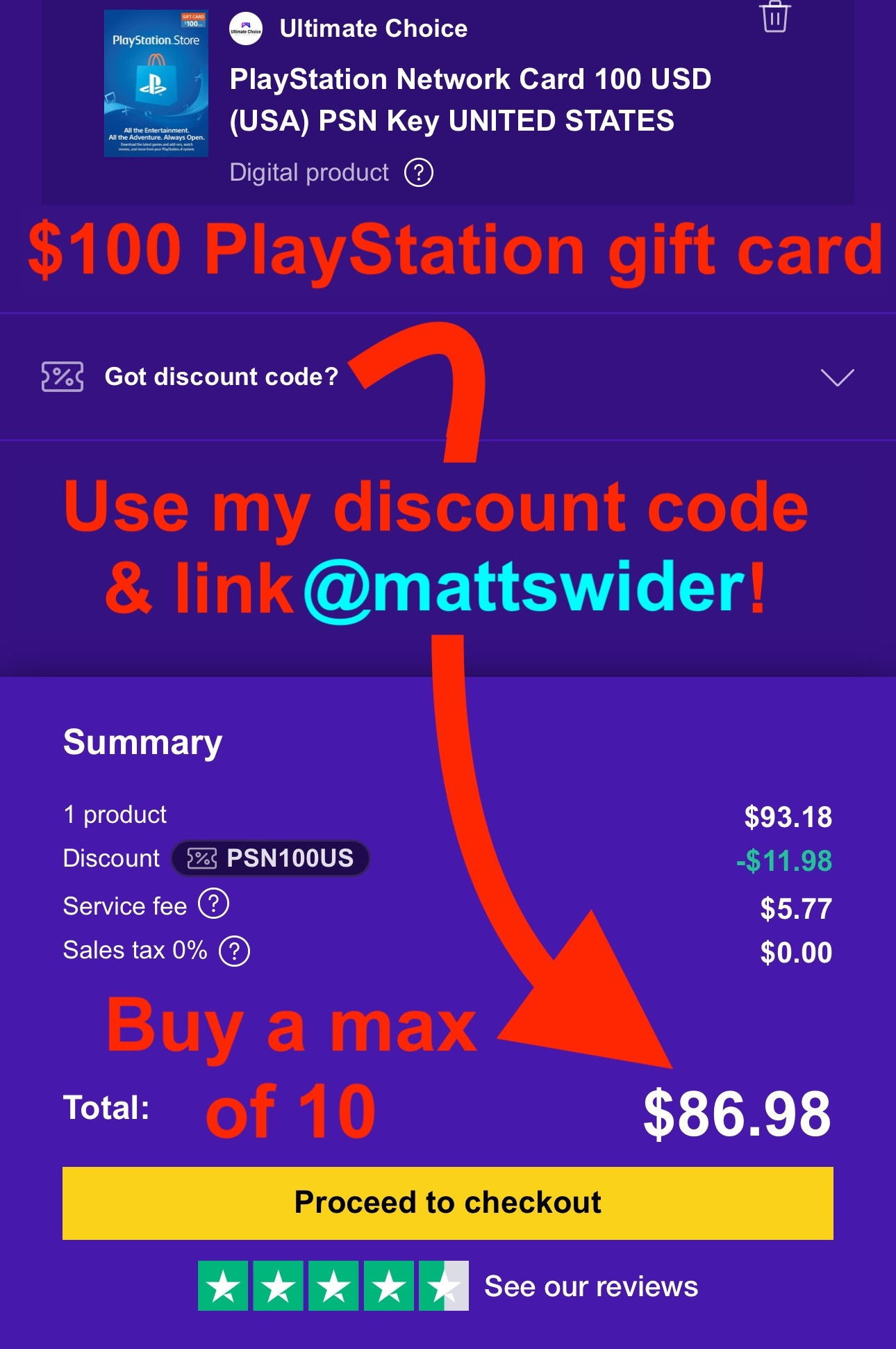 Use my discount code: PSN100US