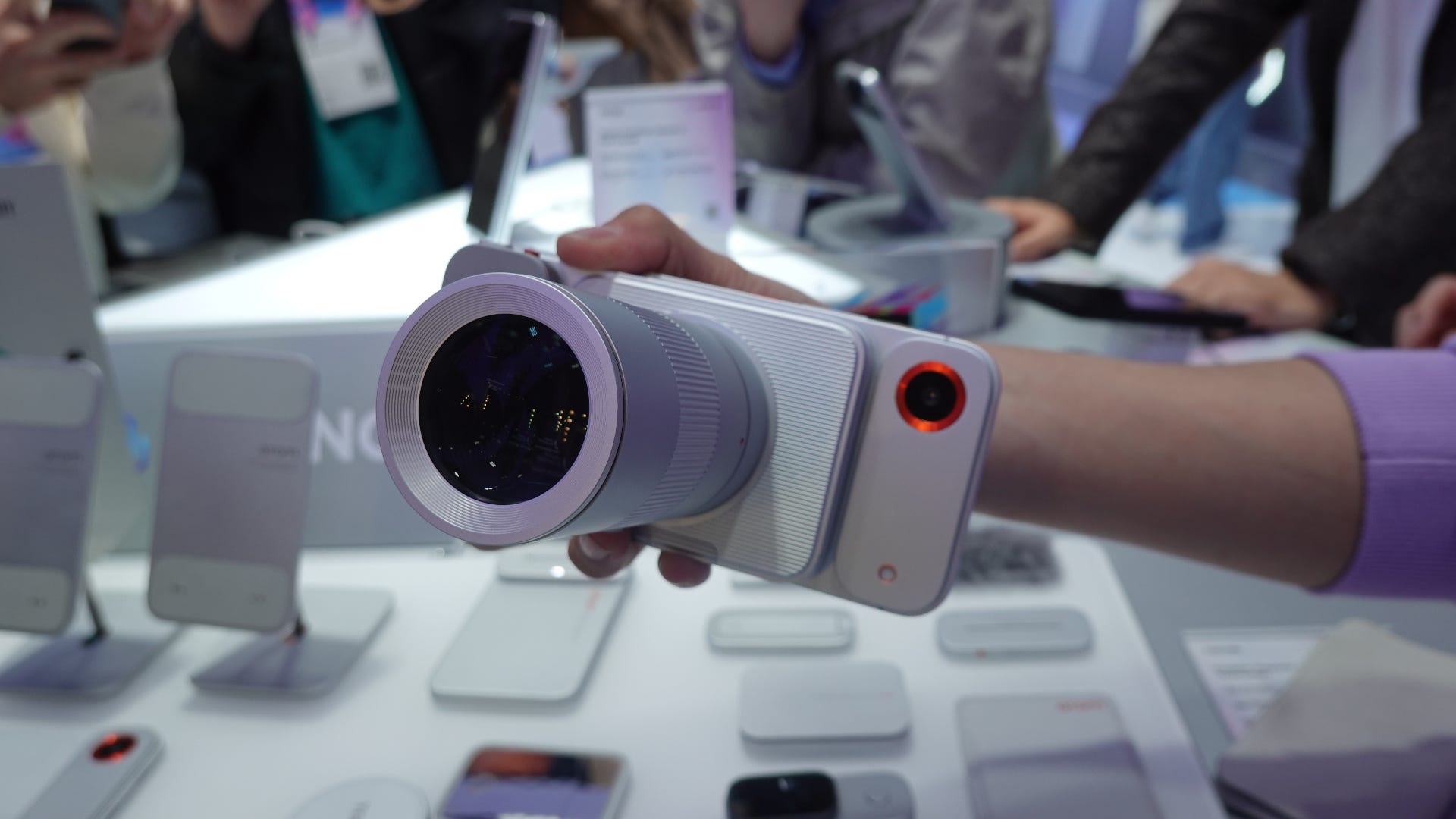 The extras can range from an additional 3000mAh battery pack (and you can add multiple on top of one another) to a USB-C port with a fixed cable (the phone is too thin to have one on its own), right the way up to a huge telephoto lens attachment as part of a camera grip.