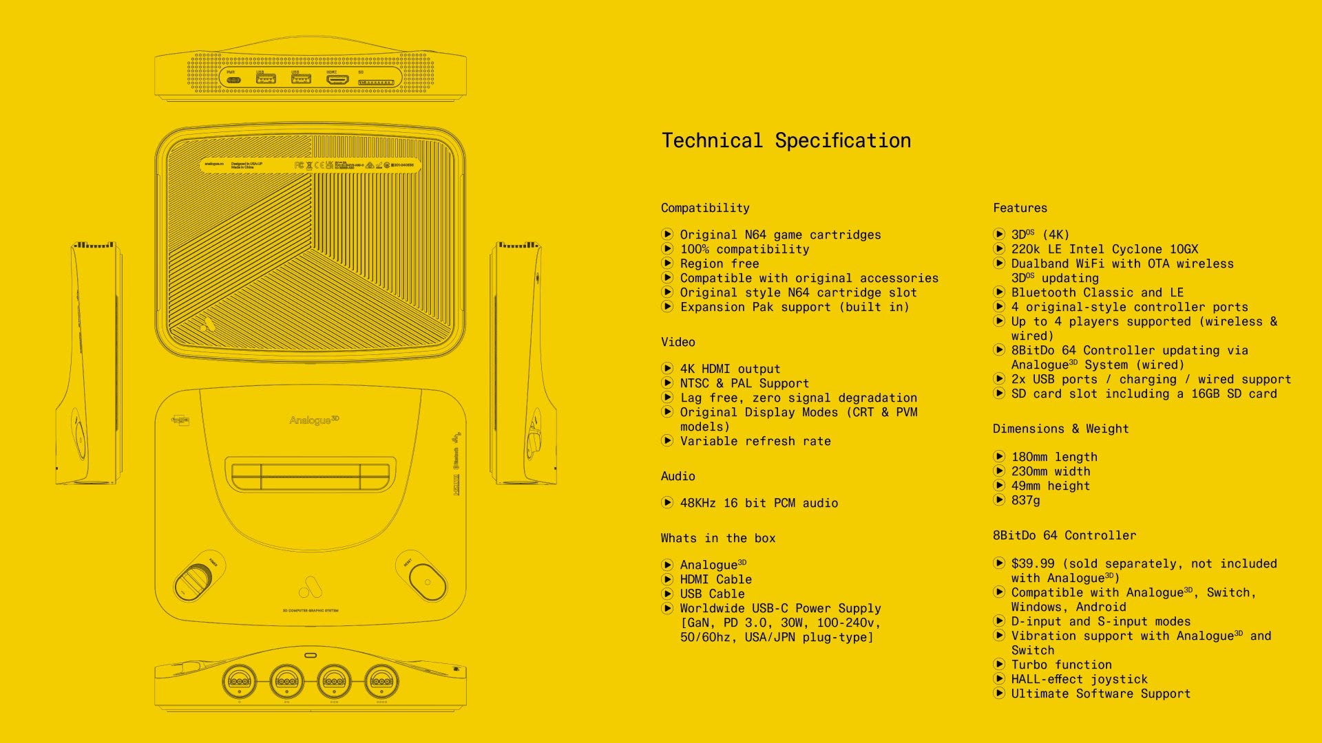 Analogue has created a custom OS for its console called “3DOS”, which lets you take screenshots, create save states, and tinker with various settings like button mapping. The company has also teamed up with 8BitDo to create a modern take on the classic N64 controller, complete with Hall Effect joysticks to combat drift. It’s sold separately for $39.99.