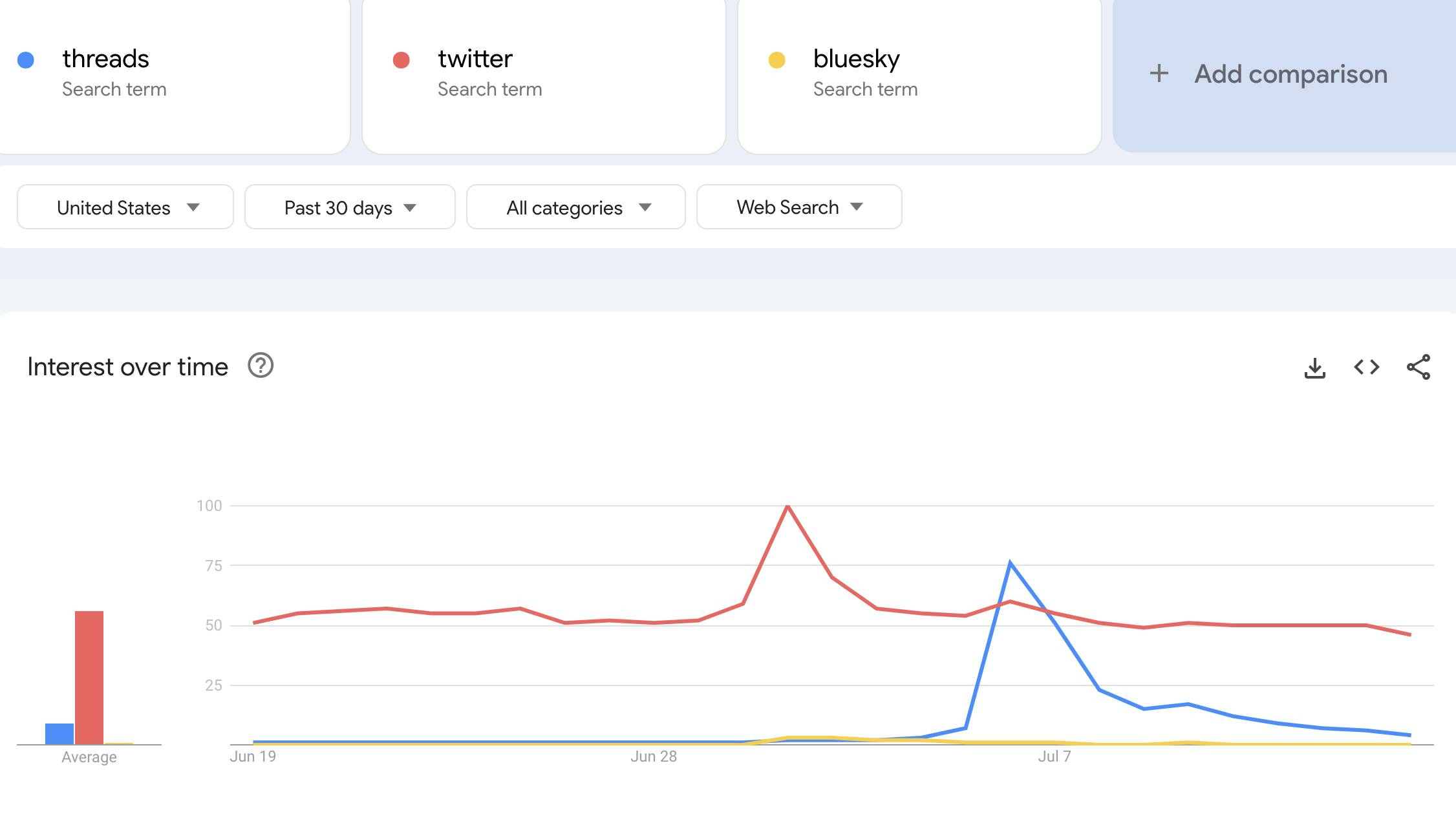 A quick look at Google Trends shows the dramatic drop off in interest in Threads since it launched on July 6. Meta now has the difficult task of retaining users and not just attracting new ones.