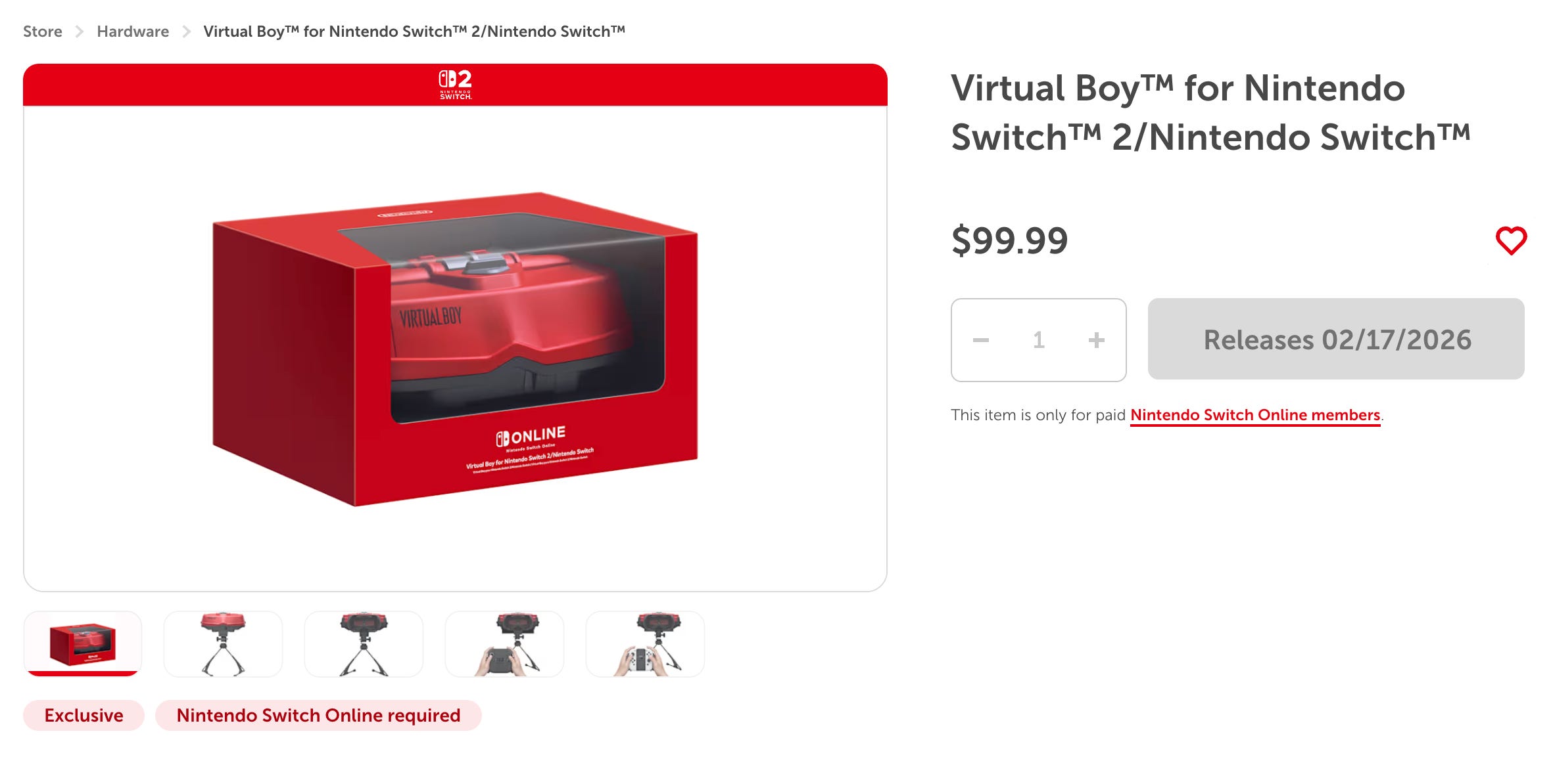 The Virtual Boy Switch 2 release date is February 17, 2026. It means weâve got a quite a few months to wait until we can stick our faces into the Virtual Boy and revisit the weird red and black games that were previously lost in time.