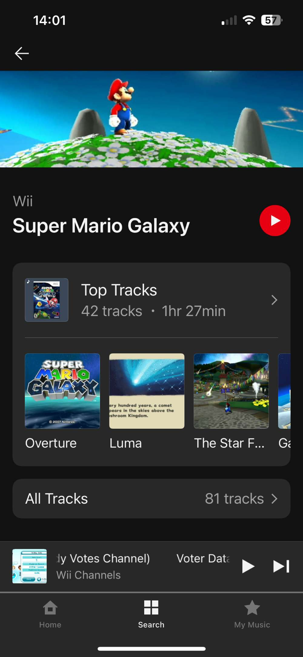 Most of the time, you're only presented with the 'Top Tracks' playlist, hence my shock when I discovered there was much more Nintendo music to discover.