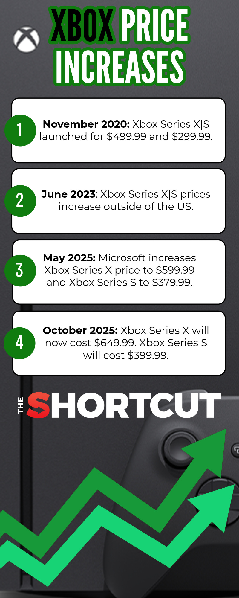 Microsoft also raised the price of the Xbox Series S 1TB to $449.99, which is the same price as a Nintendo Switch 2.