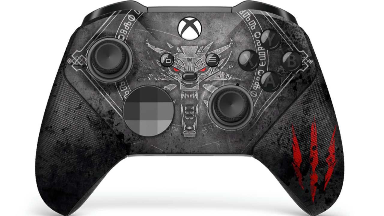 The Witcher 3: Wild Hunt Xbox Wireless controller was designed in collaboration with CD Projekt Red and features key iconography from The Witcher's world like Geralt's wolf medallion. The controller also features Glagolitic script, and the iconic red claw mark from The Witcher 3's logo.