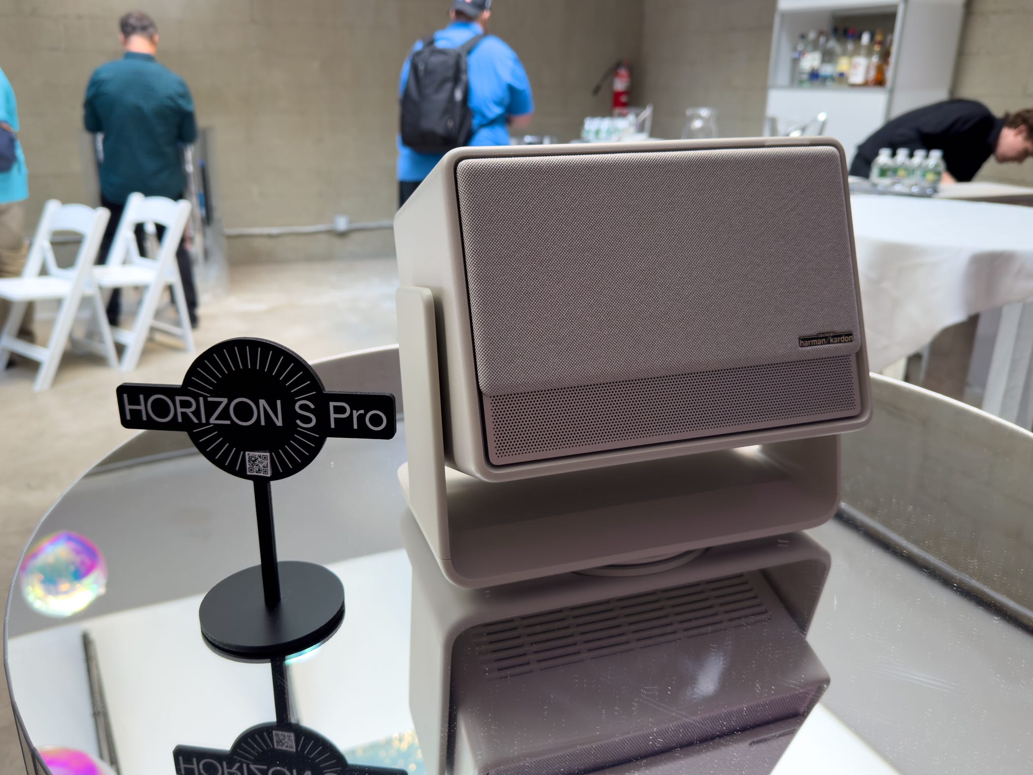 The Horizon S Pro and S Max look similar to the Horizon Ultra thanks to their cube-shaped designs and fabric exteriors. Both of them are better looking in person, and they’ll easily fit into the style of your home regardless of your aesthetic. They also come with built-in stands that allow them to rotate 360 degrees with 135 degrees of vertical rotation to land the perfect throw.